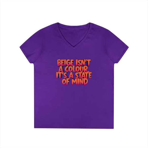 Ladies' V-Neck T-Shirt — “Beige Isn’t a Colour, It’s a State of Mind” Retro Graphic Tee