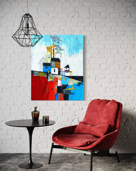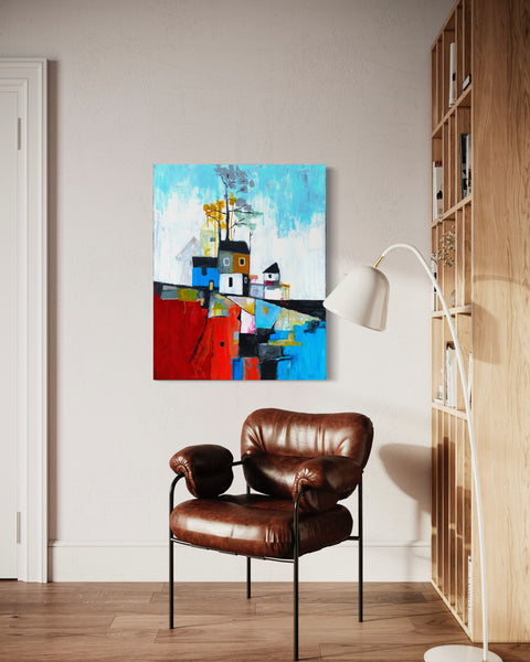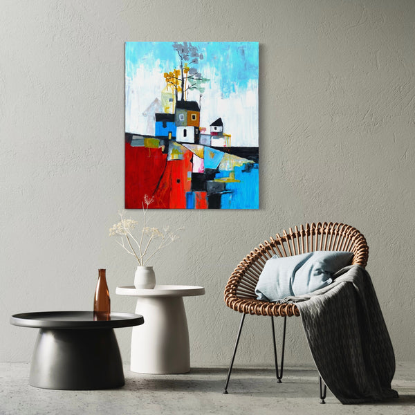 Dette maleriet er et av mine favoritter fordi de sterke, glade fargene gir liv til de skjeve linjene. En påminnelse om at skjønnhet finnes i det uperfekte – og at vi alle bærer på vår egen fargepalett.