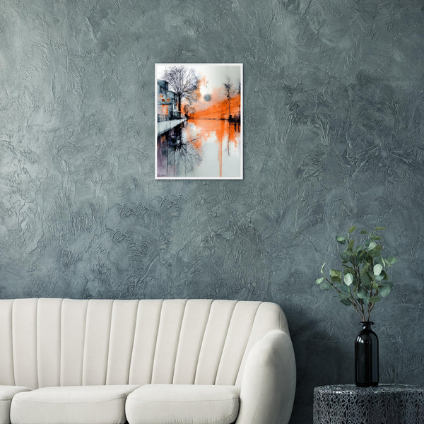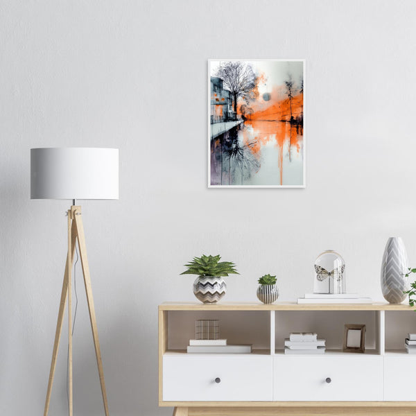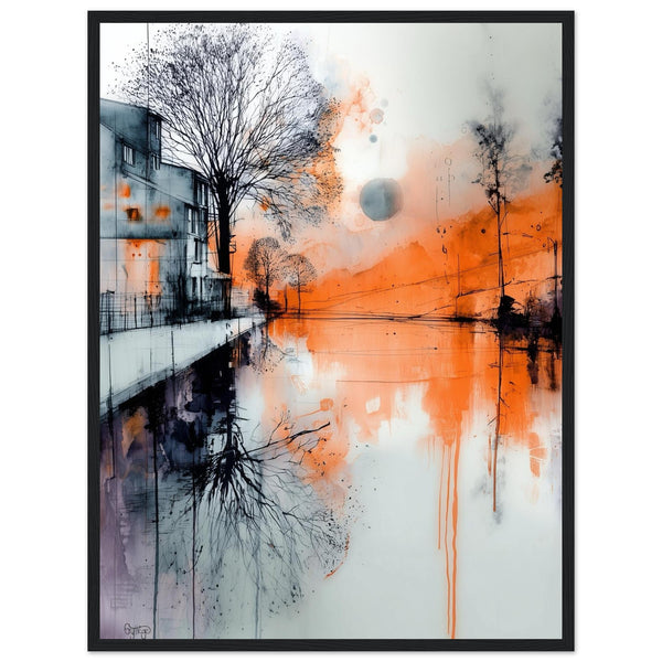 A modern, gallery-style canvas framed in sleek black wood, ready to hang.