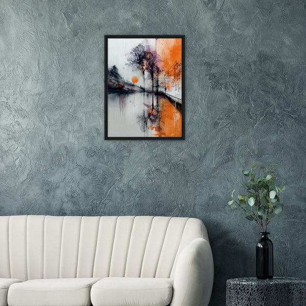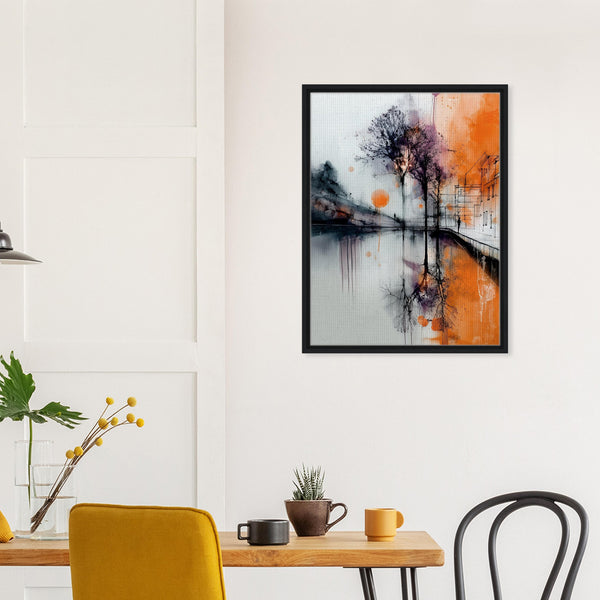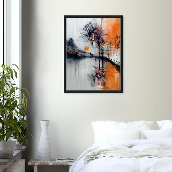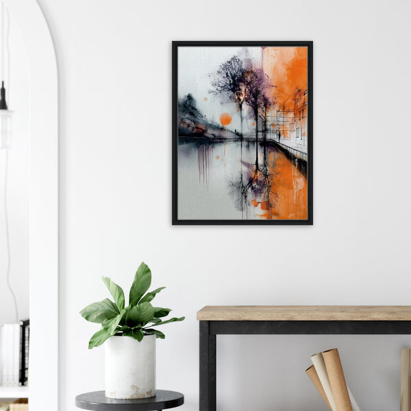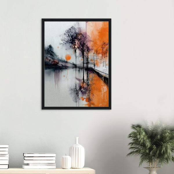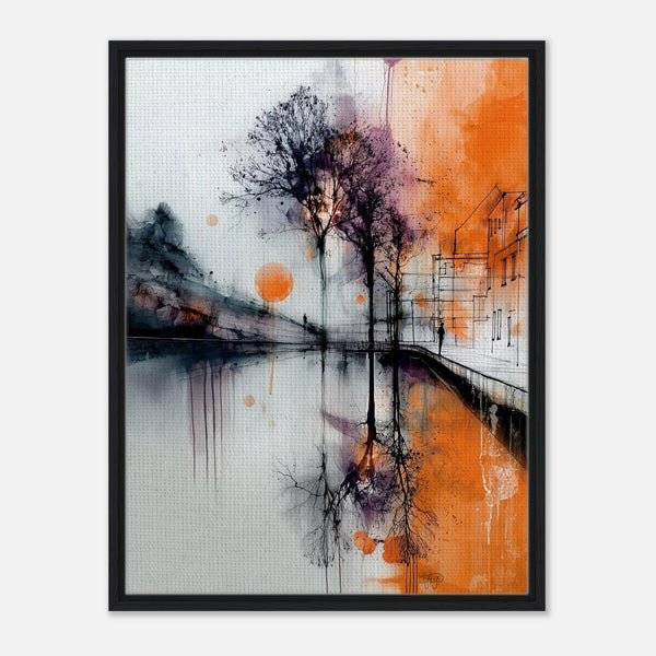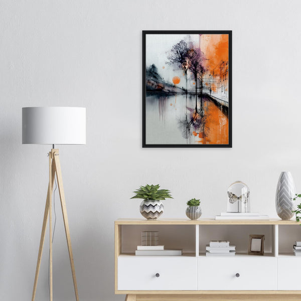 A modern, gallery-style canvas framed in sleek black wood, ready to hang.