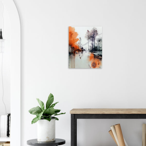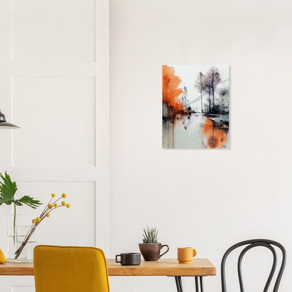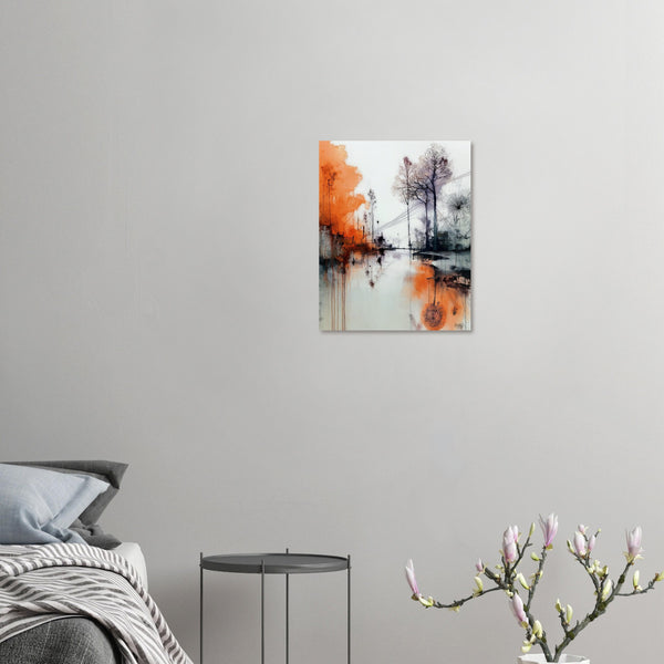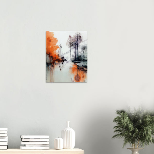 This artwork looks striking on brushed aluminium — the white areas of the image are left unprinted, allowing the metallic surface to shine through for a bold, contemporary effect.